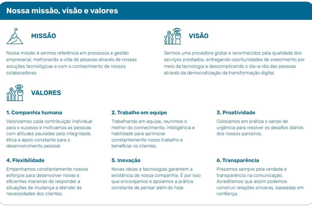 Hoje, entendemos que nosso papel é entregar oportunidades de crescimento por meio da tecnologia, com um trabalho humanizado, e nos posicionarmos como referência dos nossos parceiros de negócio rumo à transformação digital.